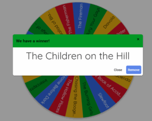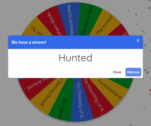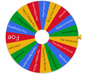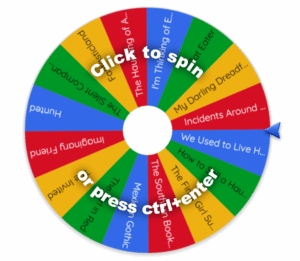 And the wheel says… The Children on the Hill by Jennifer McMahon! Cool, I’m definitely interested to read more from this author. And my library actually has this one! Okay, last spin…