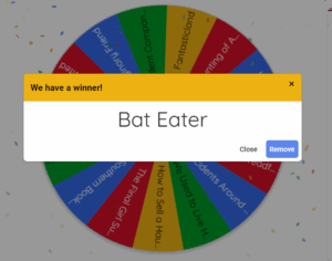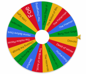 What I’m gonna do is pick one book I’m the most excited for, then put all the other titles I’m excited for in a random wheel and have it pick two, then put all the not-excited-but-interested titles in another random wheel and have it pick two more. So I’ll end up with 5 of these books to read before the end of December.